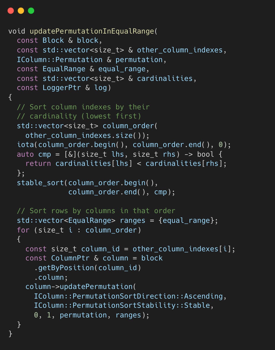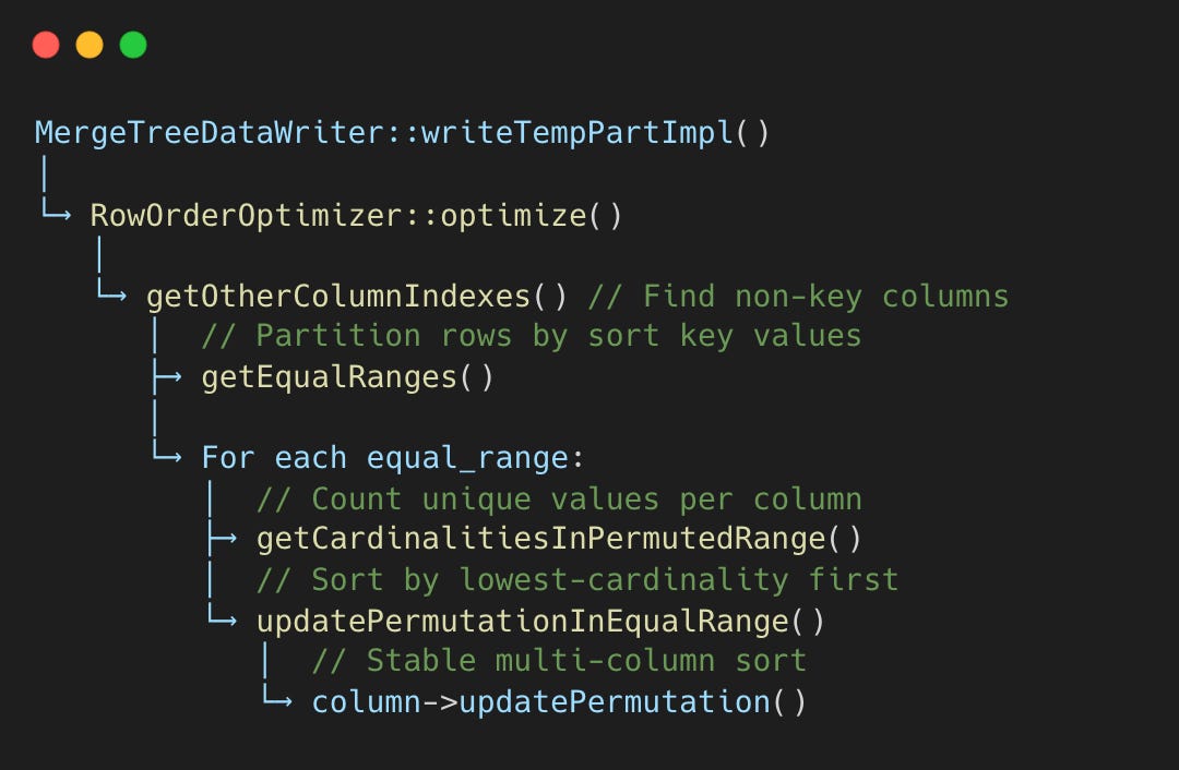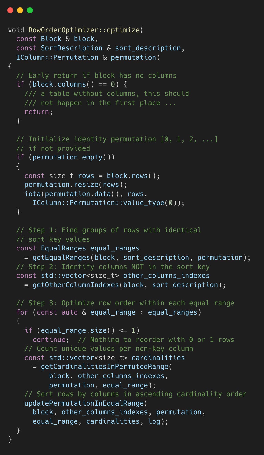 ClickHouse is an open-source columnar database built for real-time analytics over billions of rows. Its MergeTree engine stores data sorted by sort key for fast scans and efficient compression. But within rows sharing identical sort key values, the order is arbitrary, leaving compression gains on the table.