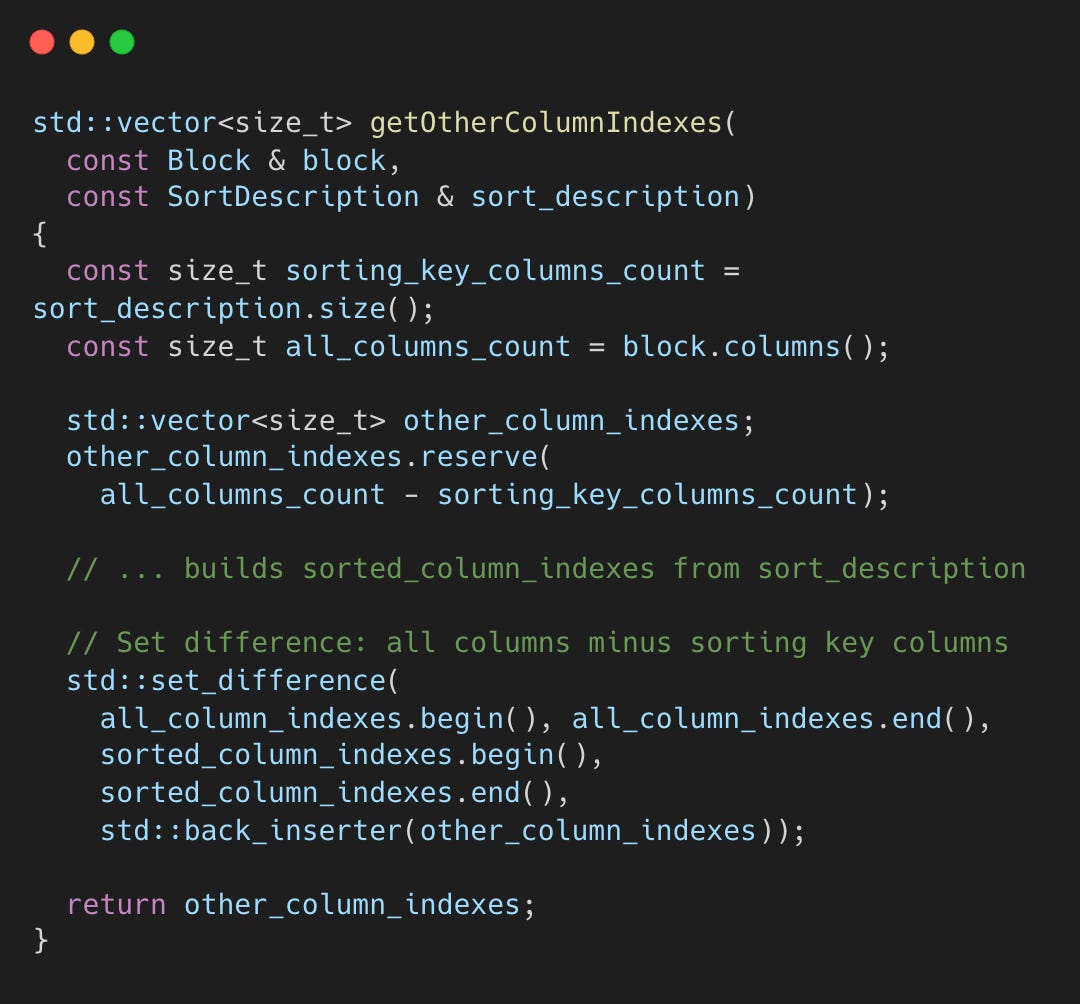This function identifies columns not in the sort key. These are columns we’re free to reorder by.