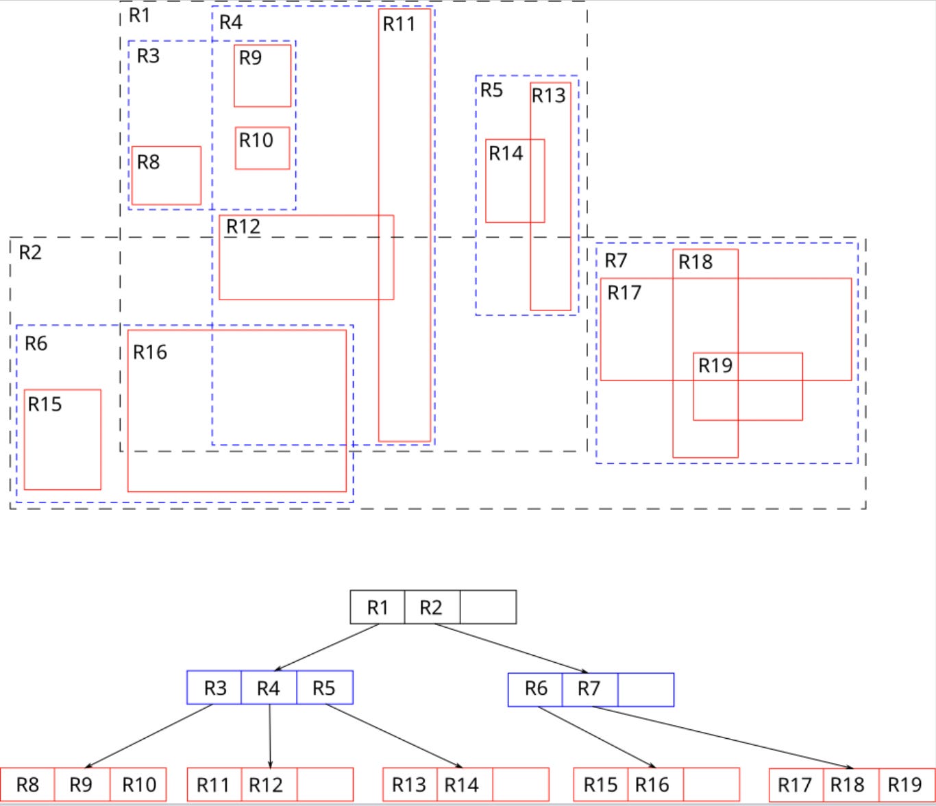 In the image above (source: Wikipedia), to find what overlaps R18, only R7 needs to be searched.