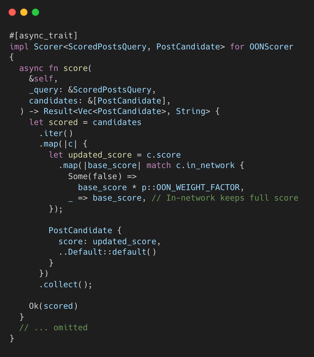Finally, OONScorer penalizes posts from accounts you don’t follow.